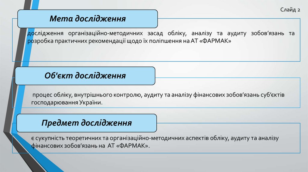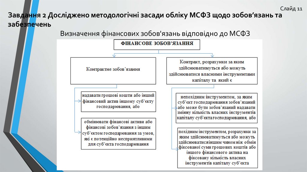 Слайд 11Завдання 2 Досліджено методологічні засади обліку МСФЗ щодо зобов’язань та