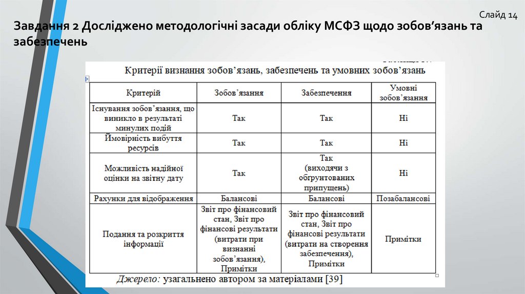 Слайд 14Завдання 2 Досліджено методологічні засади обліку МСФЗ щодо зобов’язань та