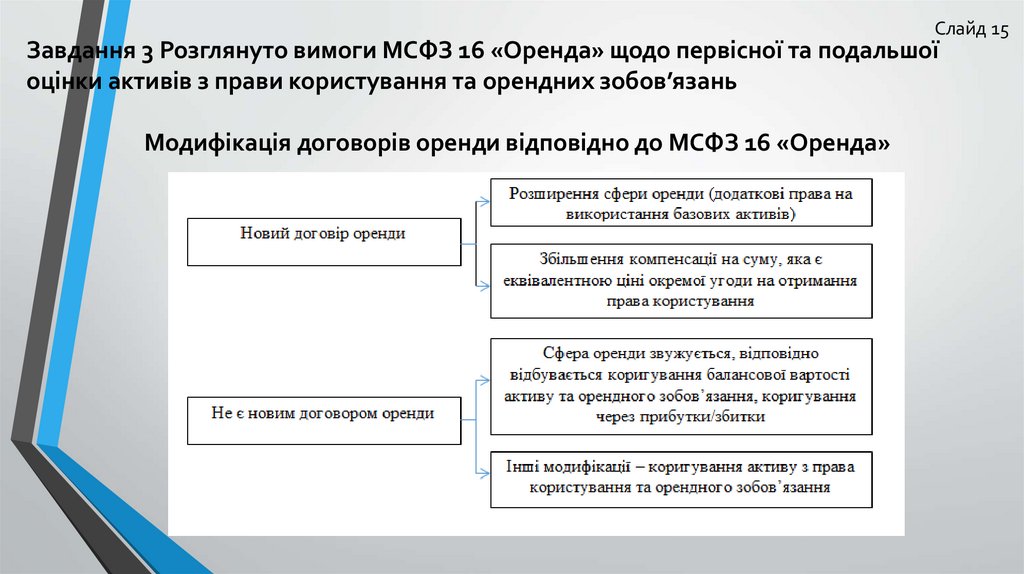 Слайд 15Завдання 3 Розглянуто вимоги МСФЗ 16 «Оренда» щодо первісної та подальшої