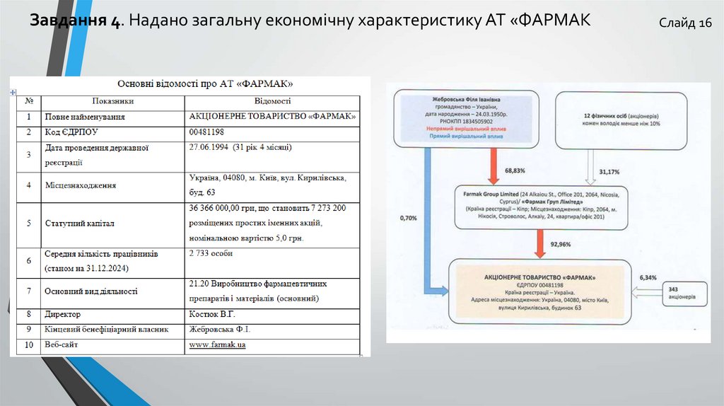 Завдання 4. Надано загальну економічну характеристику АТ «ФАРМАКСлайд 16