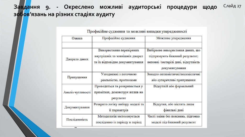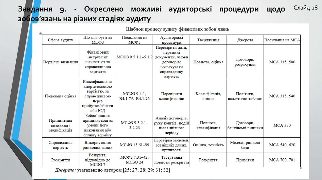 Завдання 9. - Окреслено можливі аудиторські процедури щодозобов’язань на різних стадіях аудиту