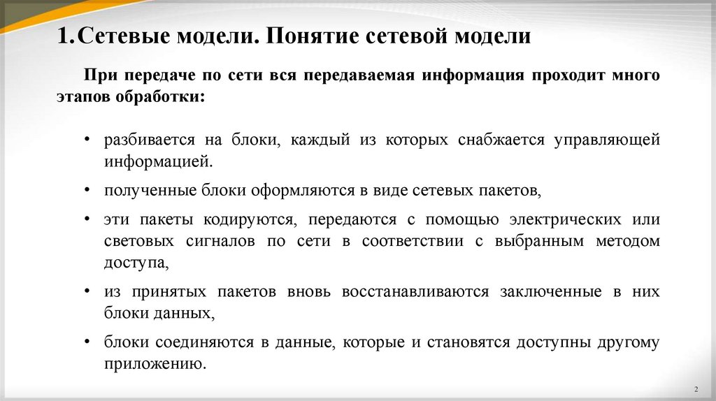 1.Сетевые модели. Понятие сетевой моделиПри передаче по сети вся передаваемая информация проходит много