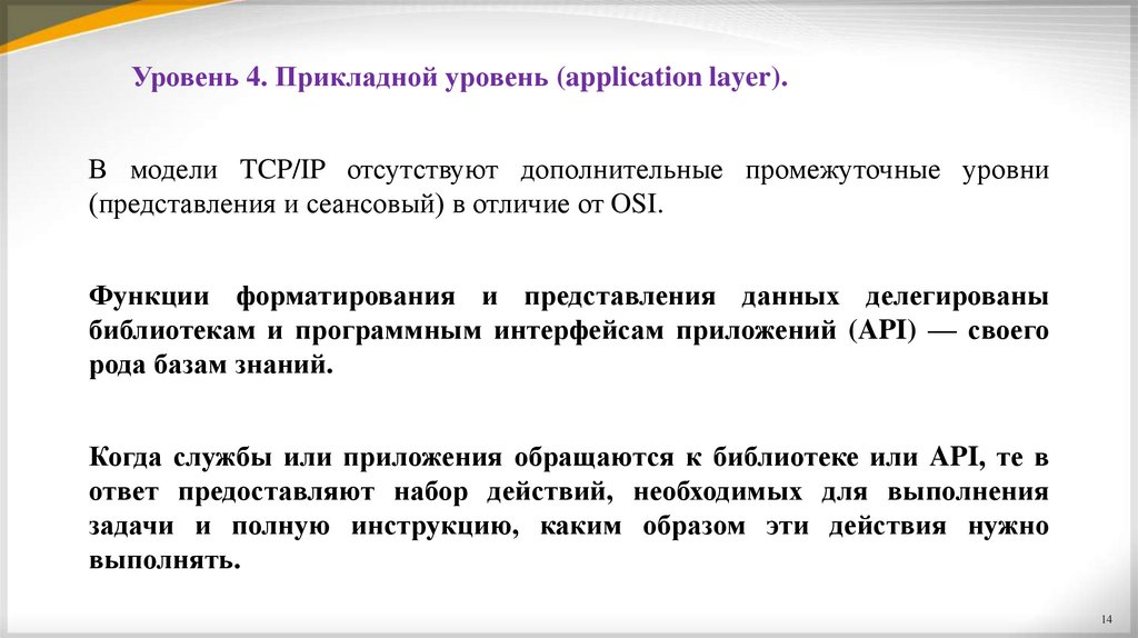 Как и модель OSI построение модели TCP/IP имеет деление на уровни,