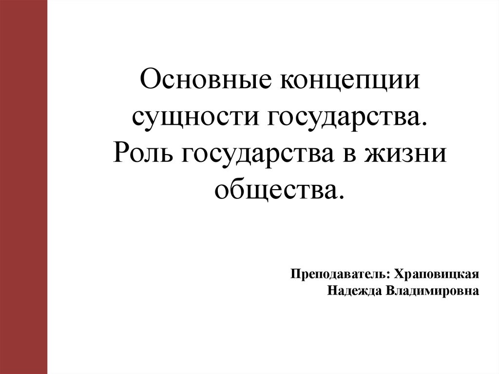 1. Основные концепции сущности государства. Роль государства в жизни общества.