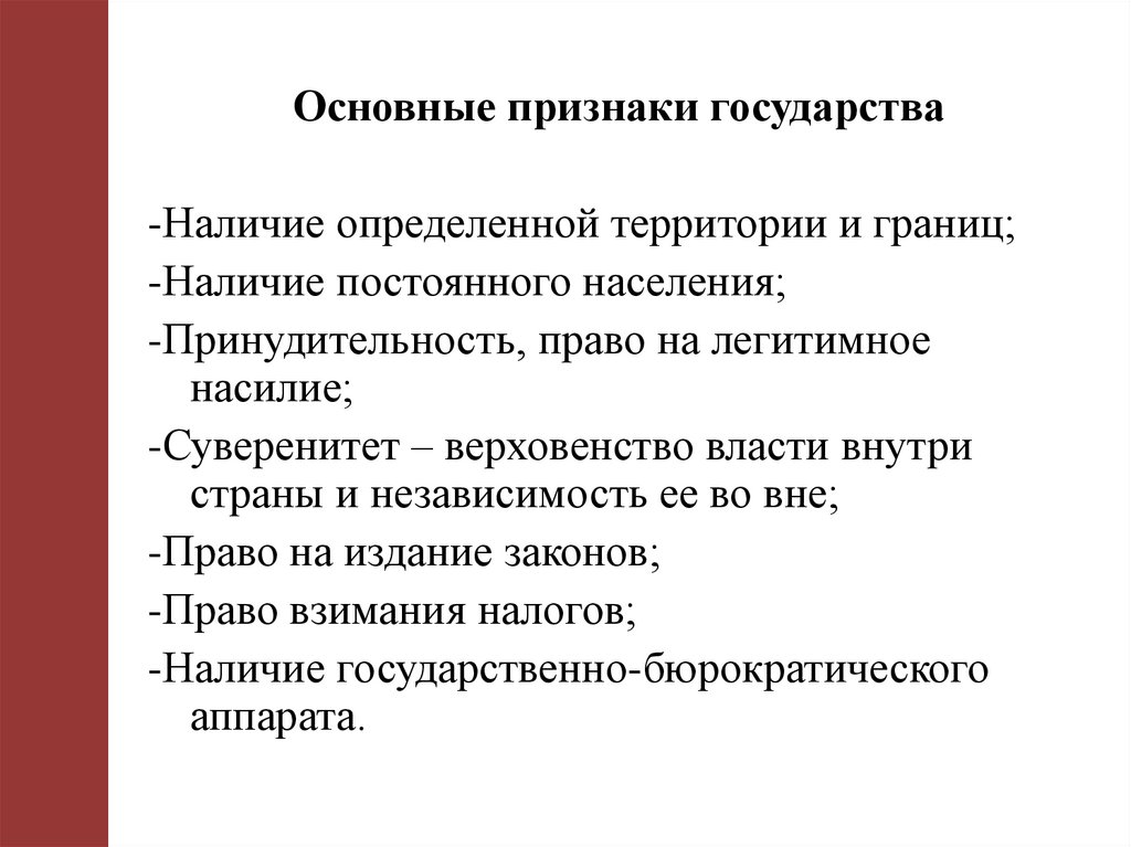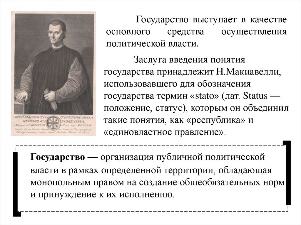 Государство — организация публичной политической власти врамках определенной территории, обладающая монопольным правом на