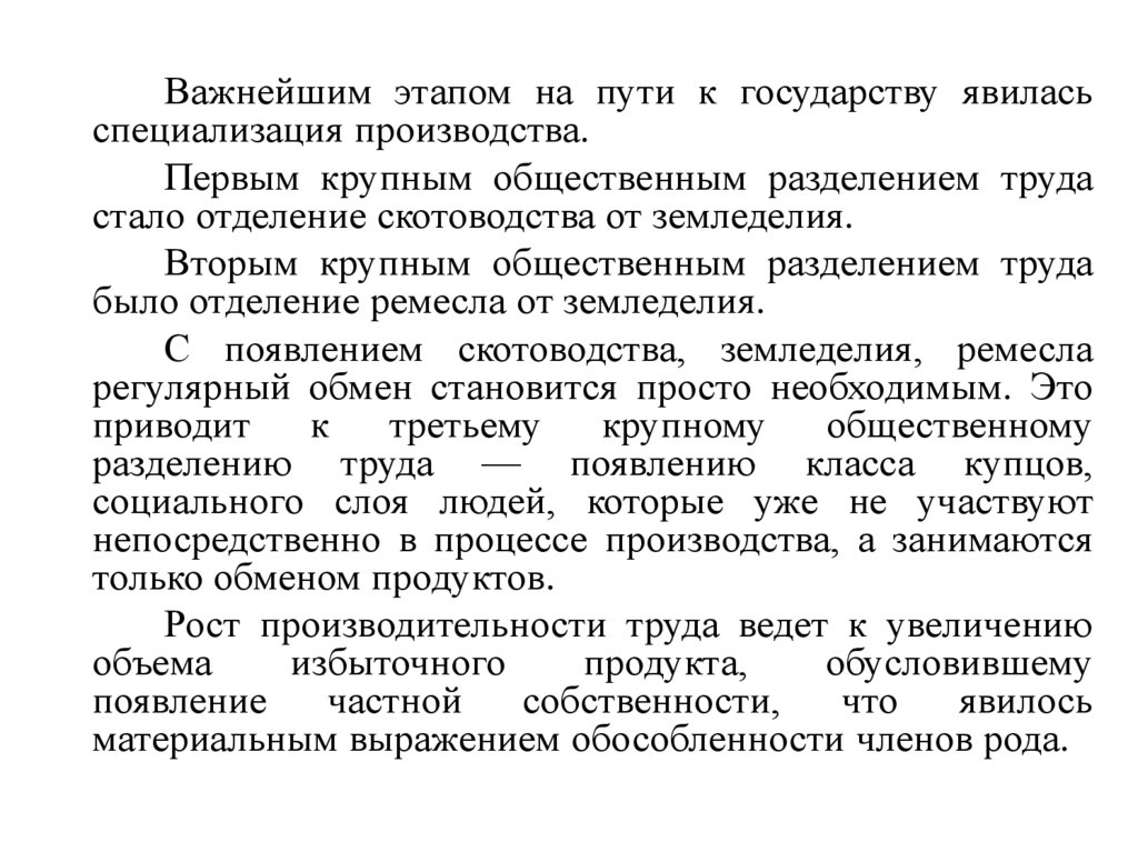 Важнейшим этапом на пути к государству явиласьспециализация производства.