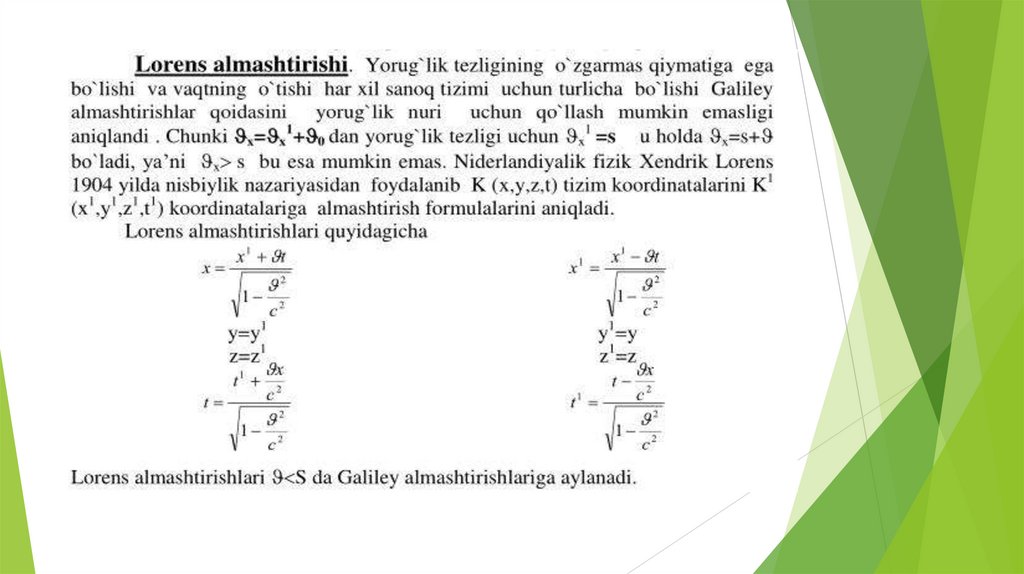 1. NISBIYLIK NAZARIYASI ELEMENTLARI