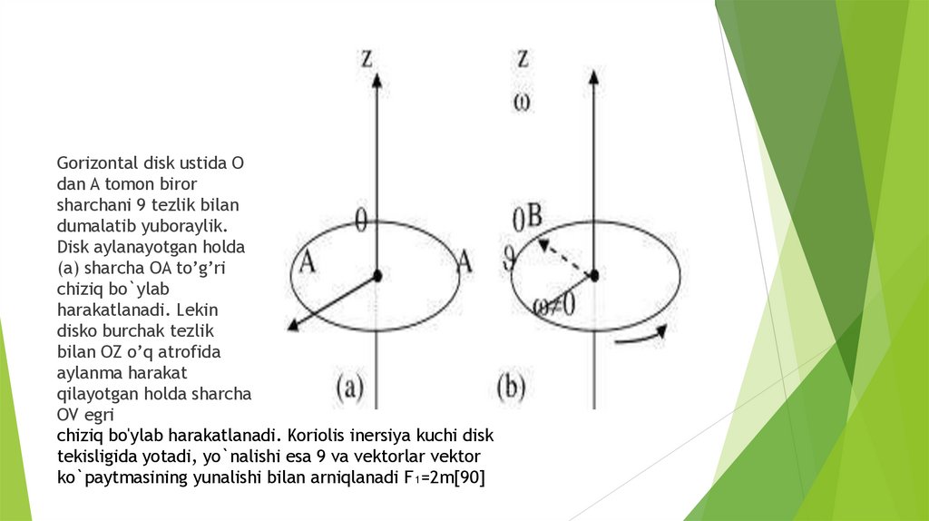 chiziq bo'ylab harakatlanadi. Koriolis inersiya kuchi disk