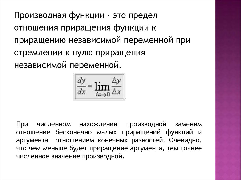 численное значение производной.
