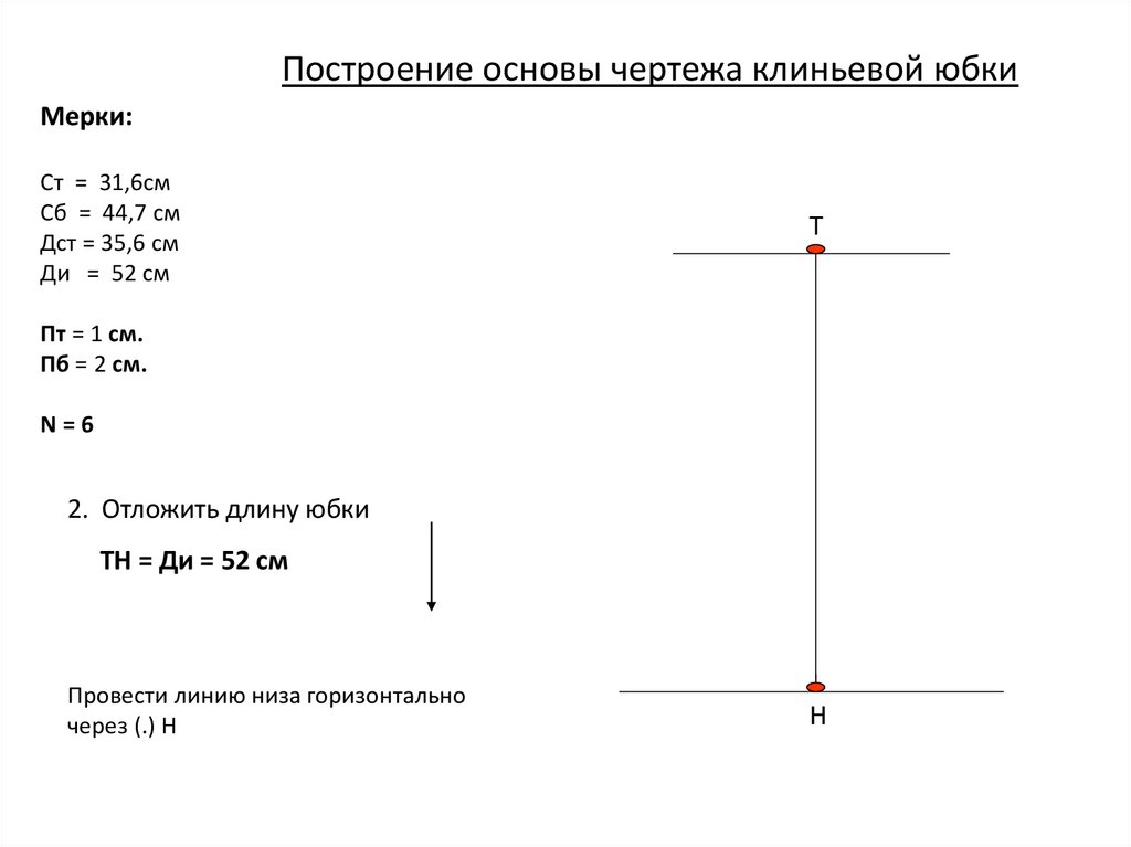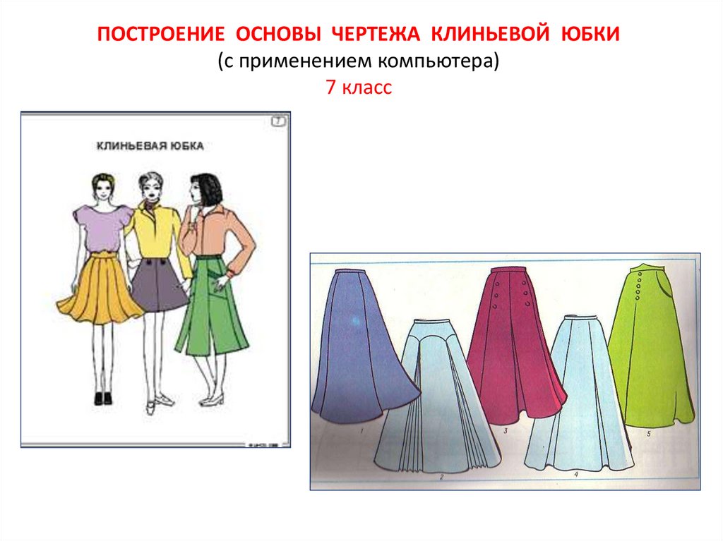 1. ПОСТРОЕНИЕ ОСНОВЫ ЧЕРТЕЖА КЛИНЬЕВОЙ ЮБКИ (с применением компьютера) 7 класс