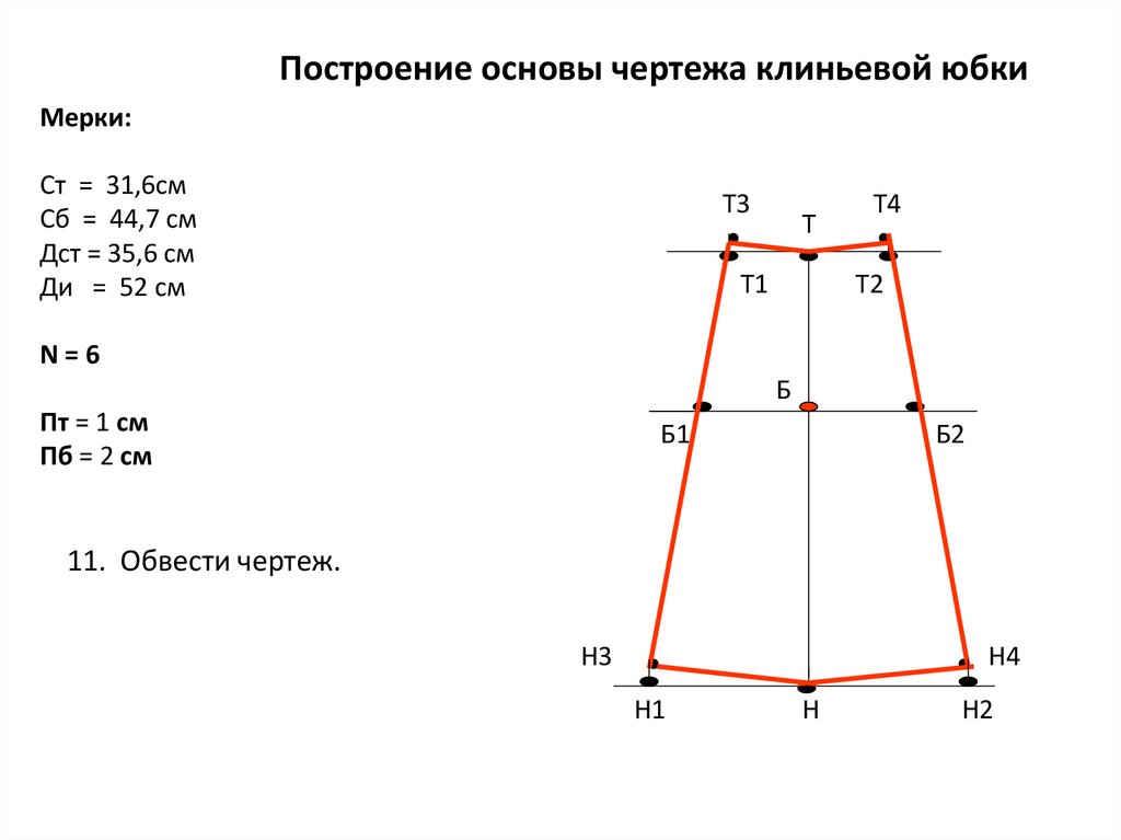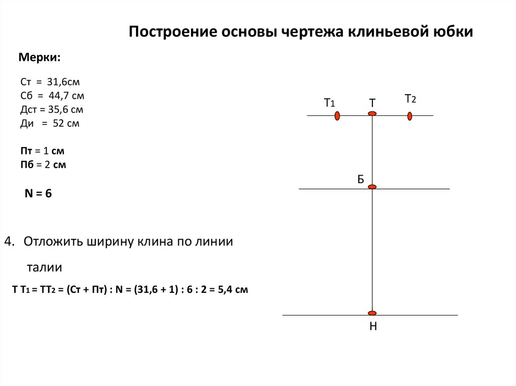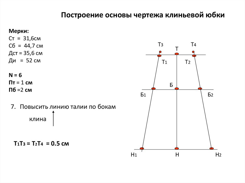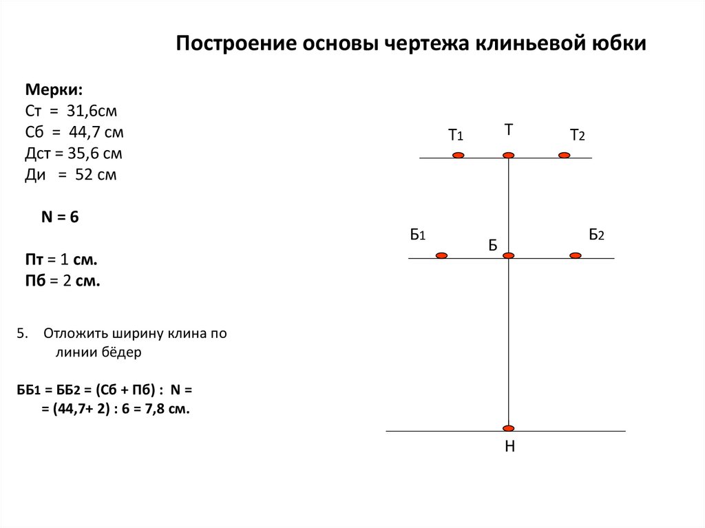 7 кл-Построение чертежа клиньевой юбки-Шестиклинка