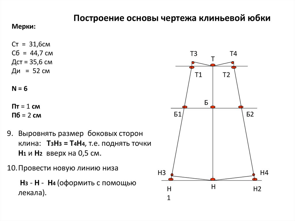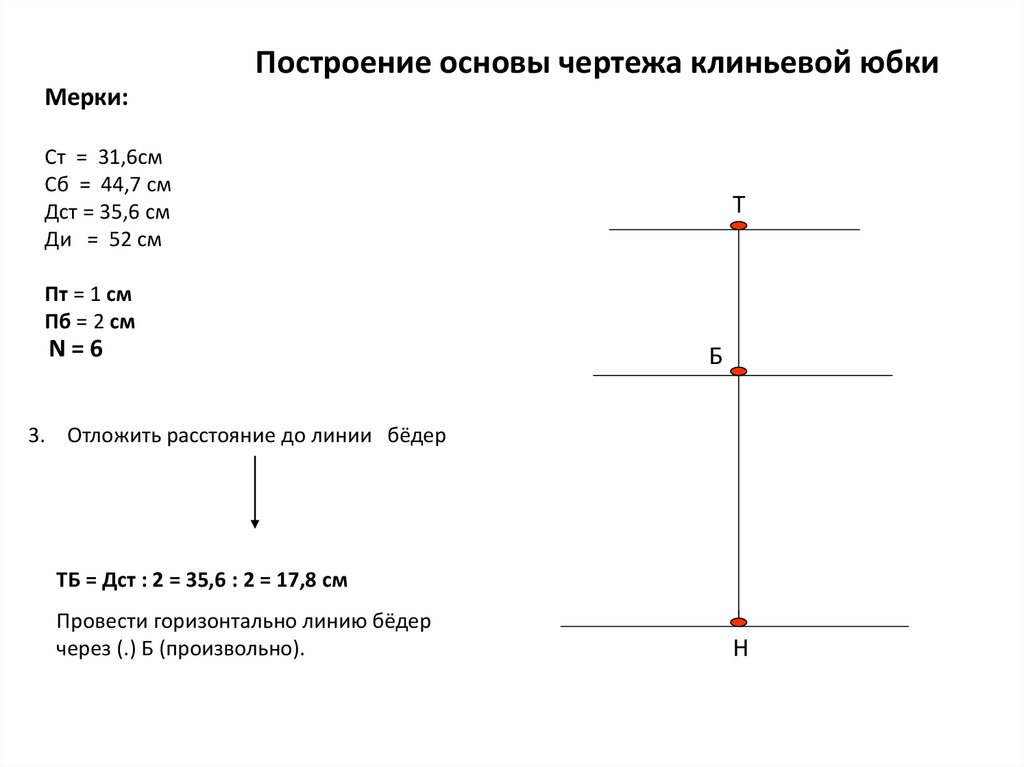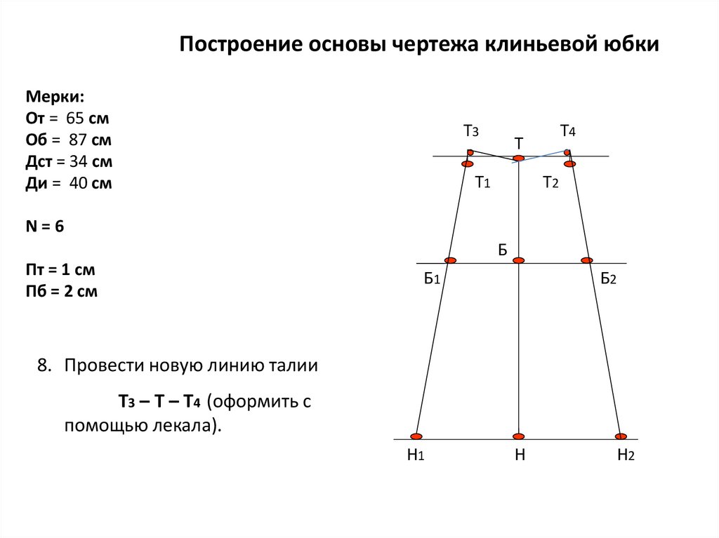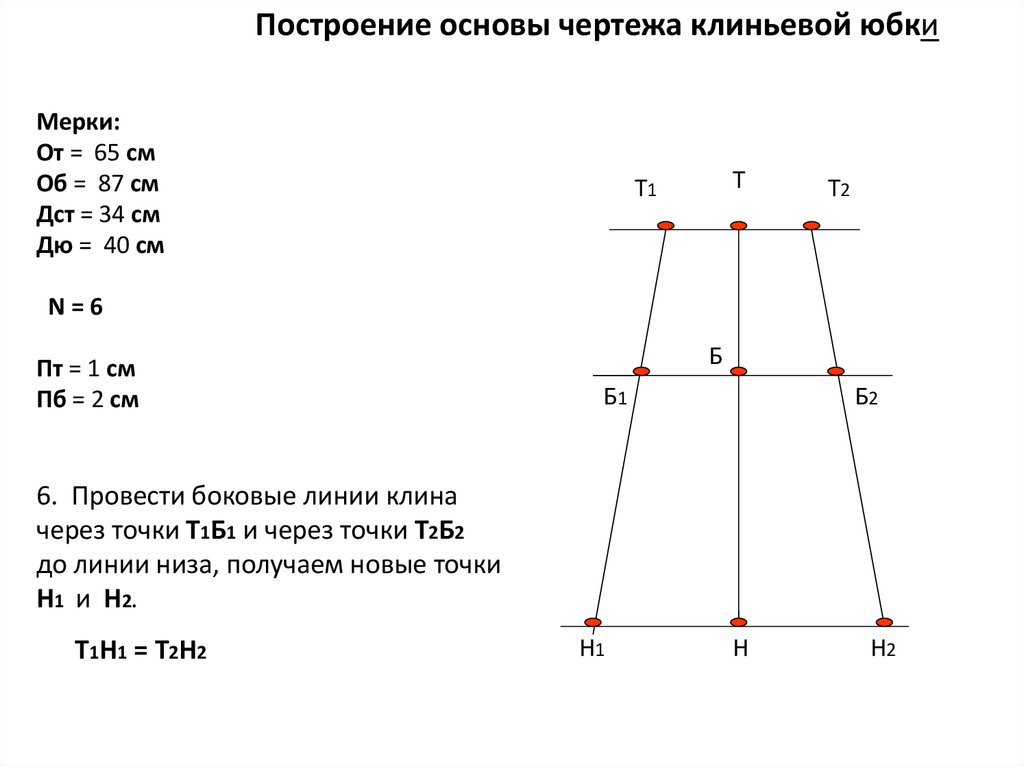 7 кл-Построение чертежа клиньевой юбки-Шестиклинка