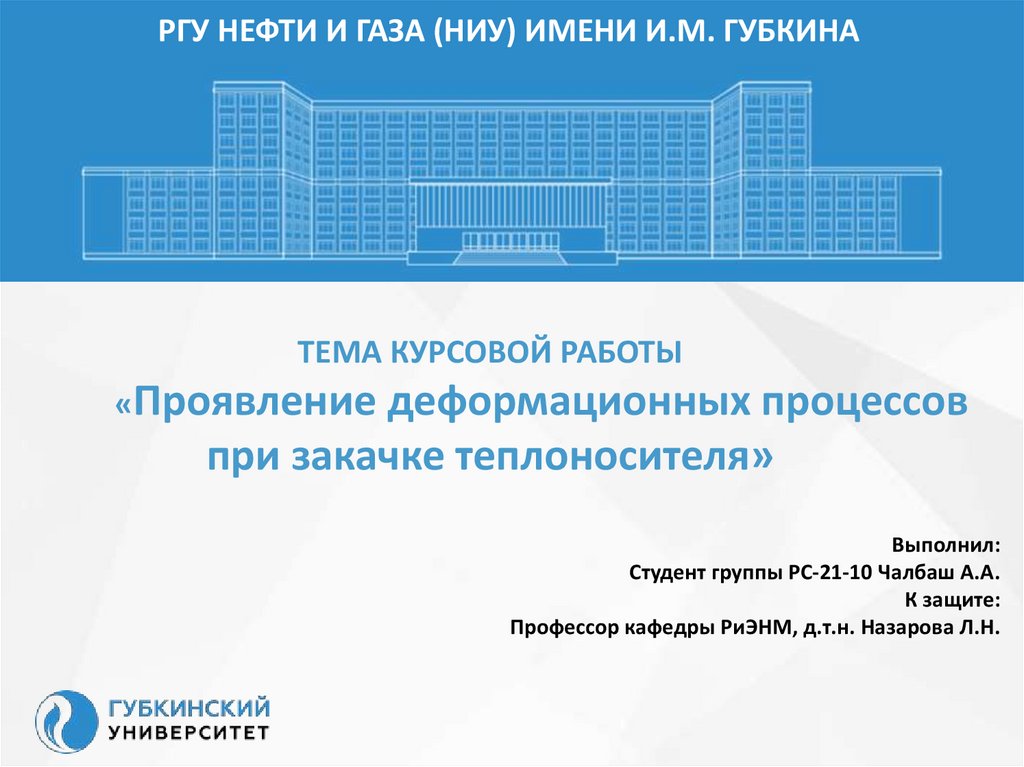 1. ТЕМА КУРСОВОЙ РАБОТЫ «Проявление деформационных процессов при закачке теплоносителя»