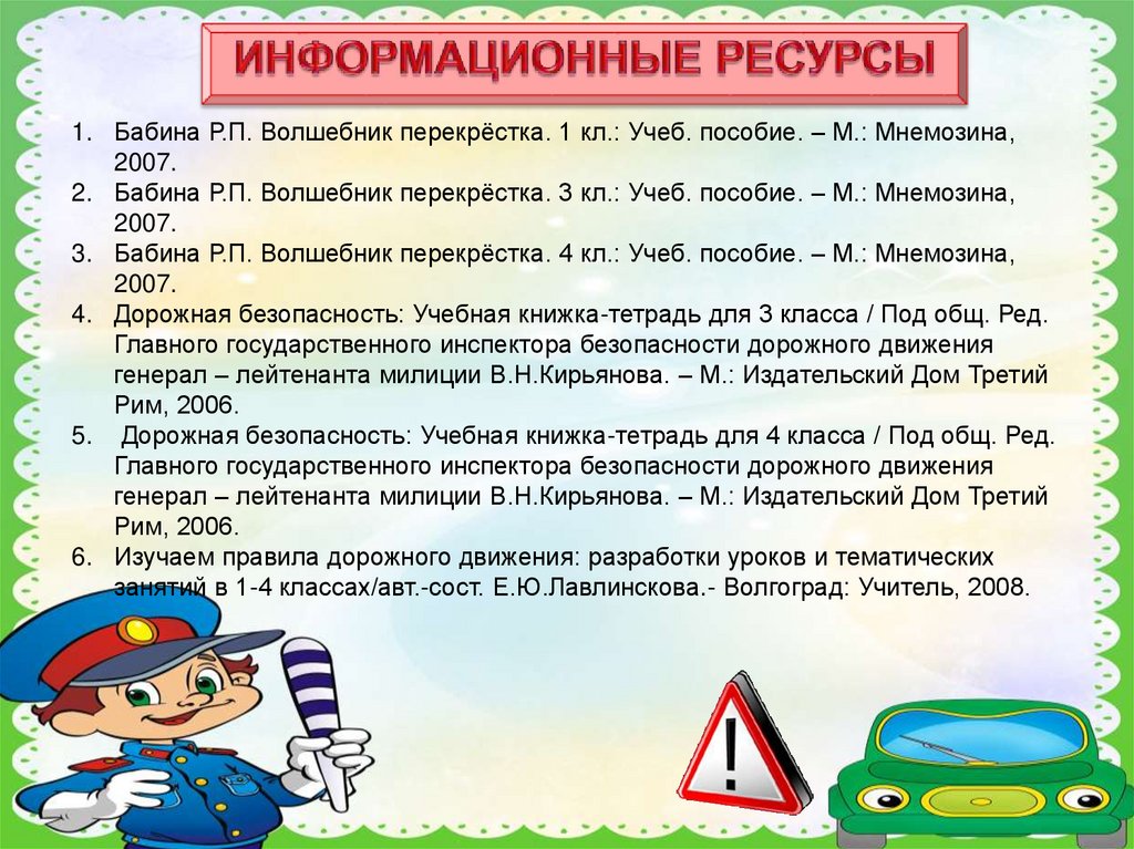 1. Бабина Р.П. Волшебник перекрёстка. 1 кл.: Учеб. пособие. – М.: Мнемозина,2007.