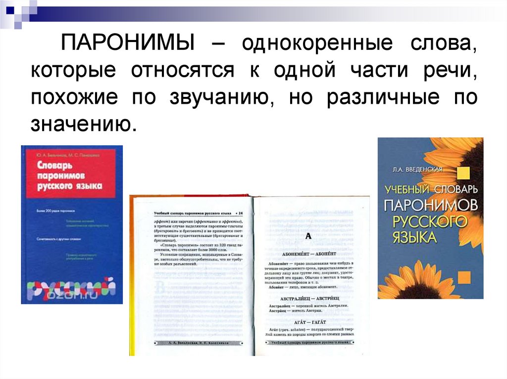 ПАРОНИМЫ – однокоренные слова,которые относятся к одной части речи,