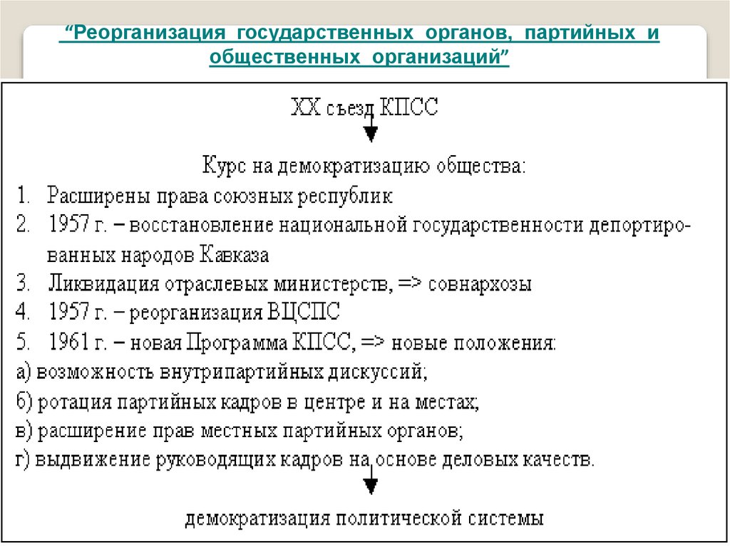 “Реорганизация государственных органов, партийных иобщественных организаций”