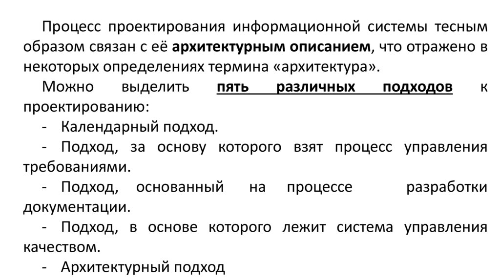 Процесс проектирования информационной системы теснымобразом связан с её архитектурным описанием, что отражено в