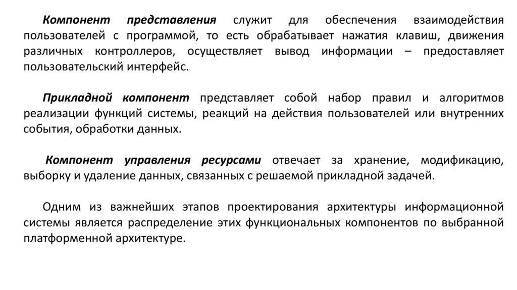 Прикладной компонент представляет собой набор правил и алгоритмов