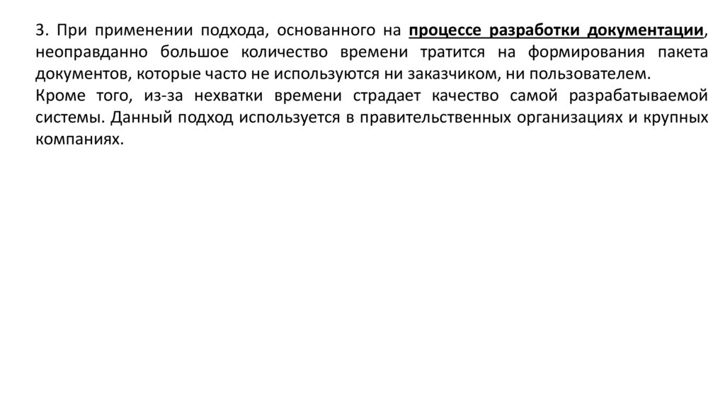 3. При применении подхода, основанного на процессе разработки документации,неоправданно большое количество времени тратится на формирования пакета
