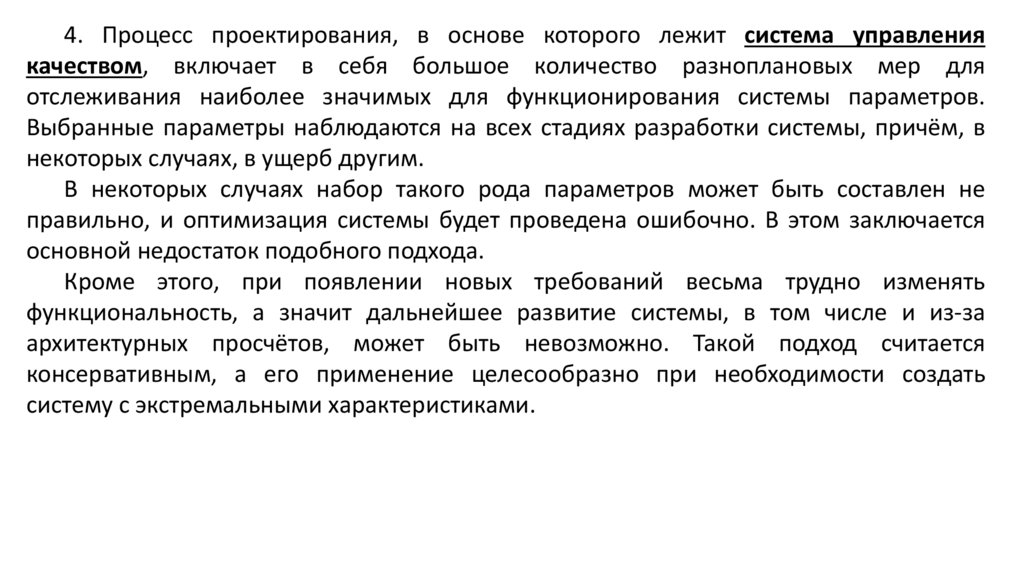 4. Процесс проектирования, в основе которого лежит система управлениякачеством, включает в себя большое количество разноплановых мер для