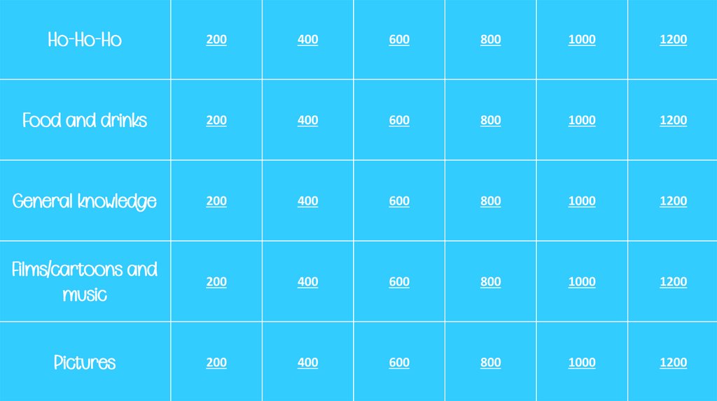 Dasher, Dancer, Prancer,Категория 3 – 1200 ответ
