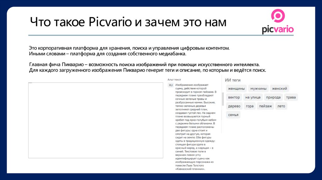 Что такое Picvario и зачем это намЭто корпоративная платформа для хранения, поиска и управления цифровым контентом.