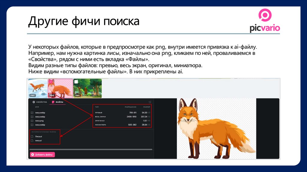Другие фичи поискаУ некоторых файлов, которые в предпросмотре как png, внутри имеется привязка к ai-файлу.