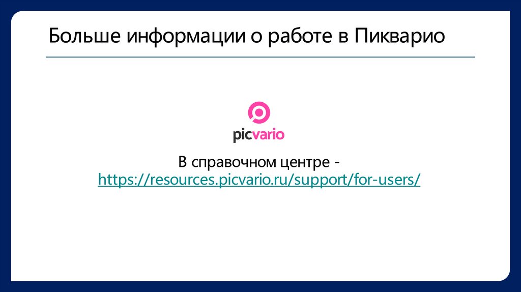 Больше информации о работе в ПиквариоВ справочном центре https://resources.picvario.ru/support/for-users/
