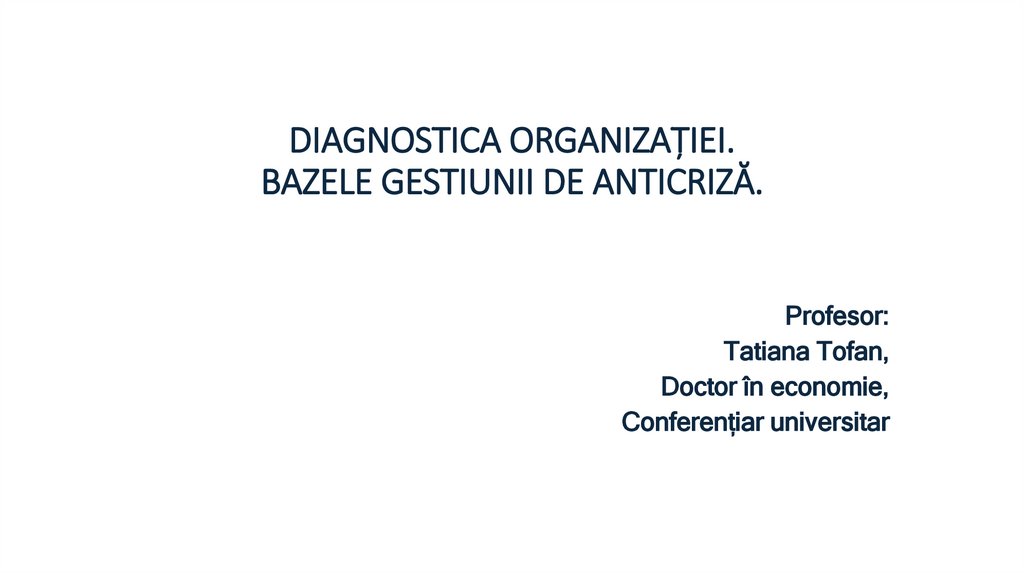 1. Diagnosticarea organizației.2. Bazele gestiunii de anticriză.
