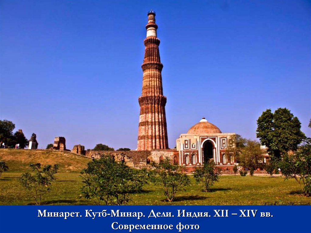 Минарет. Кутб-Минар. Дели. Индия. XII – XIV вв.Современное фото