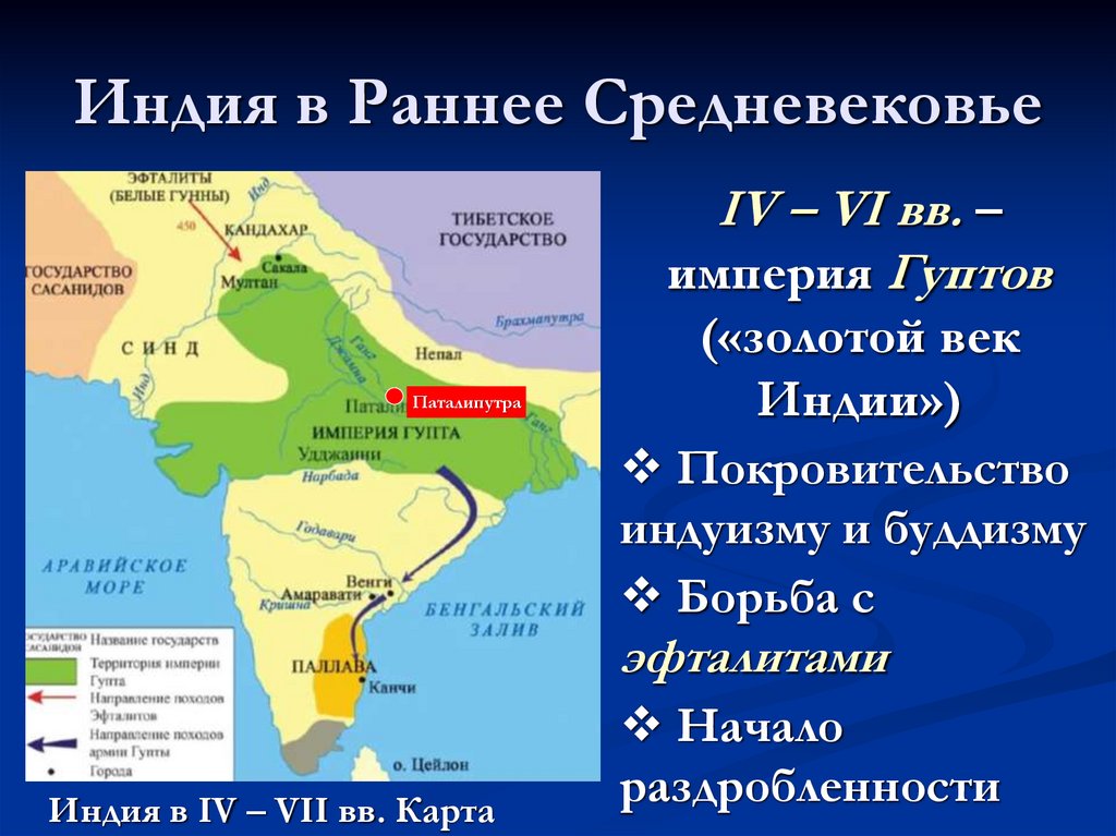 Индия в IV – VII вв. Карта