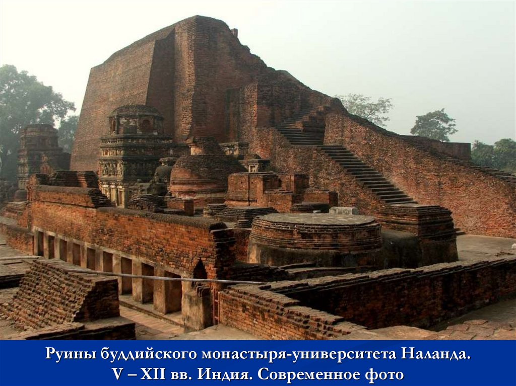 Руины буддийского монастыря-университета Наланда.V – XII вв. Индия. Современное фото