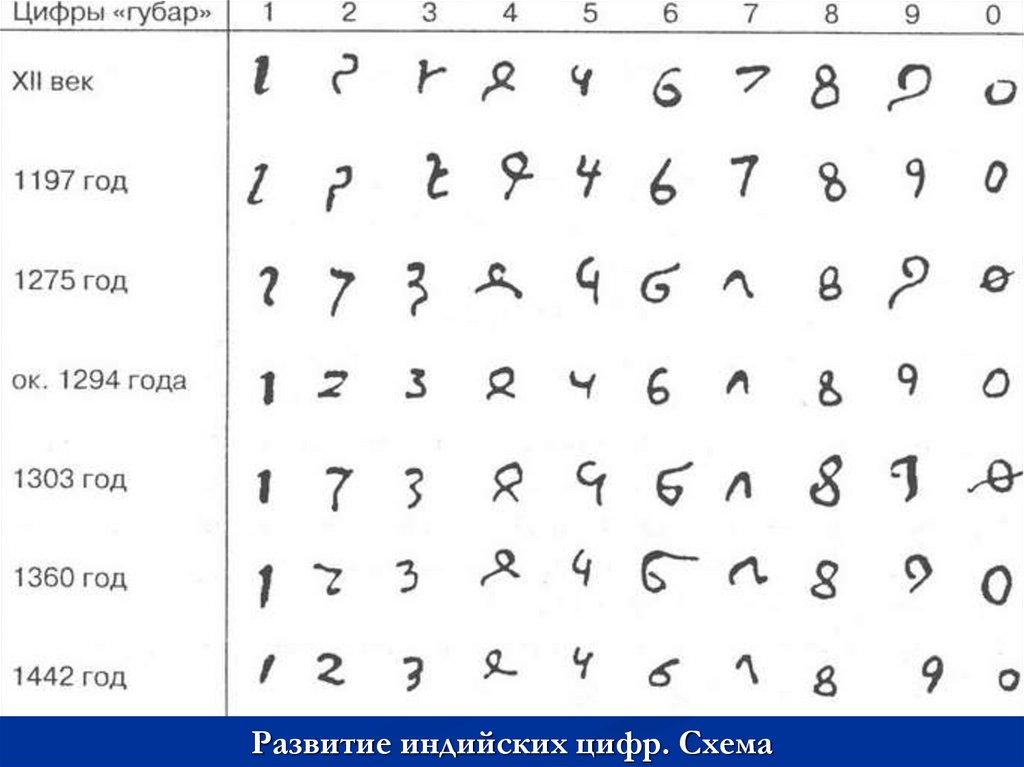 Развитие индийских цифр. Схема10.