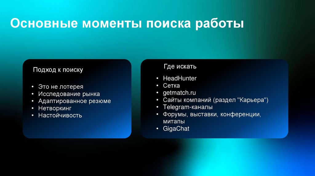 Основные моменты поиска работыГде искать