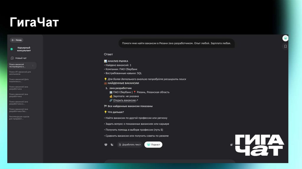 ГигаЧатВ ГигаЧат появился бесплатный карьерный консультант. С его помощью