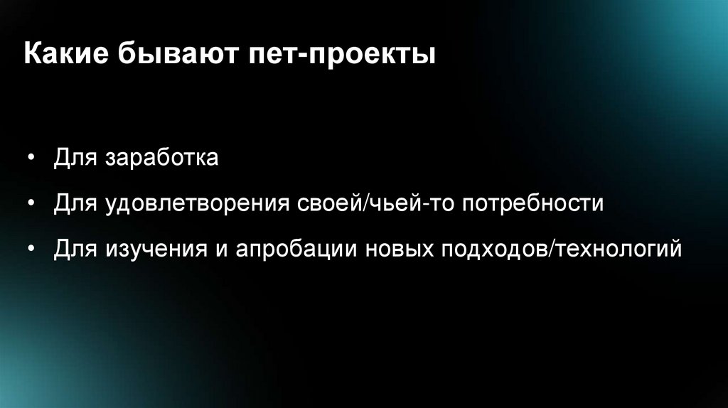 Какие бывают пет-проекты• Для заработка