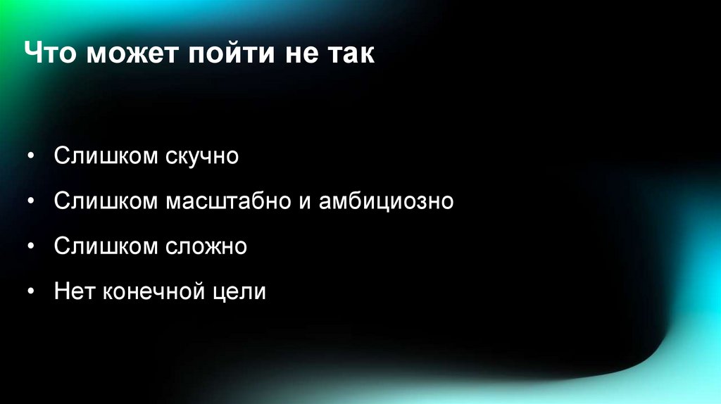 Что может пойти не так• Слишком скучно