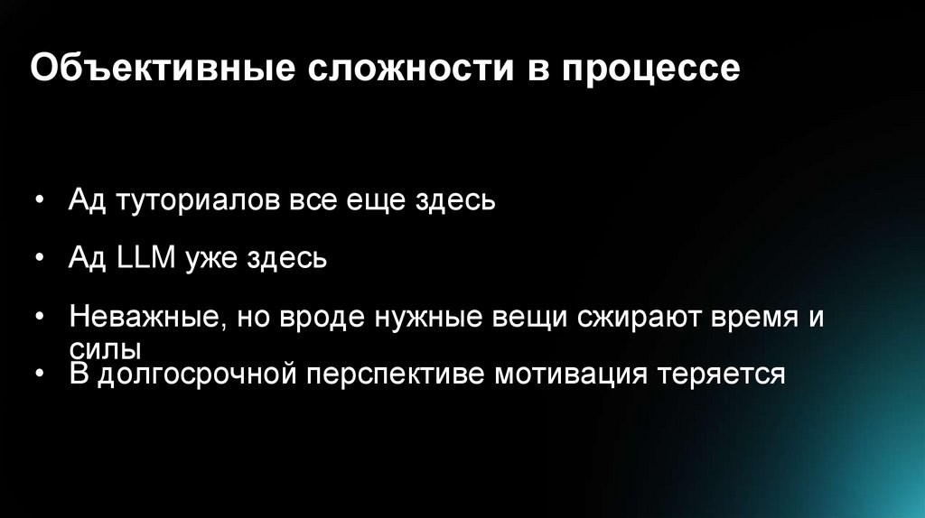 Объективные сложности в процессе• Ад туториалов все еще здесь
