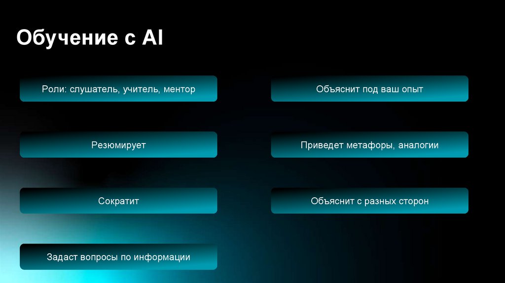 Обучение с AIРоли: слушатель, учитель, ментор