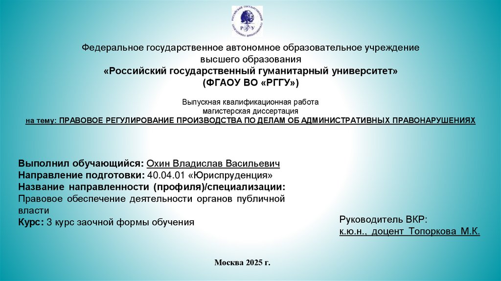 Охин В.В. презентация ВКР