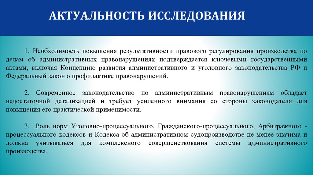 АКТУАЛЬНОСТЬ ИССЛЕДОВАНИЯ1. Необходимость повышения результативности правового регулирования производства по