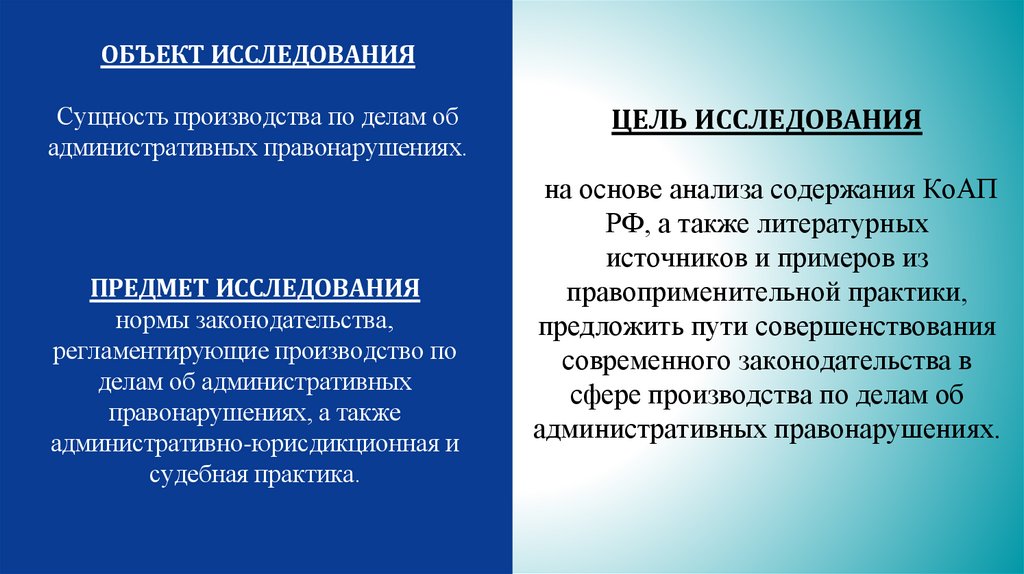 ОБЪЕКТ ИССЛЕДОВАНИЯСущность производства по делам об