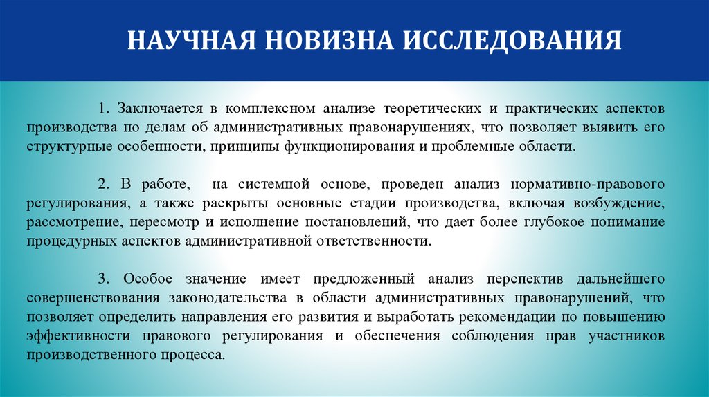 НАУЧНАЯ НОВИЗНА ИССЛЕДОВАНИЯ1. Заключается в комплексном анализе теоретических и практических аспектов