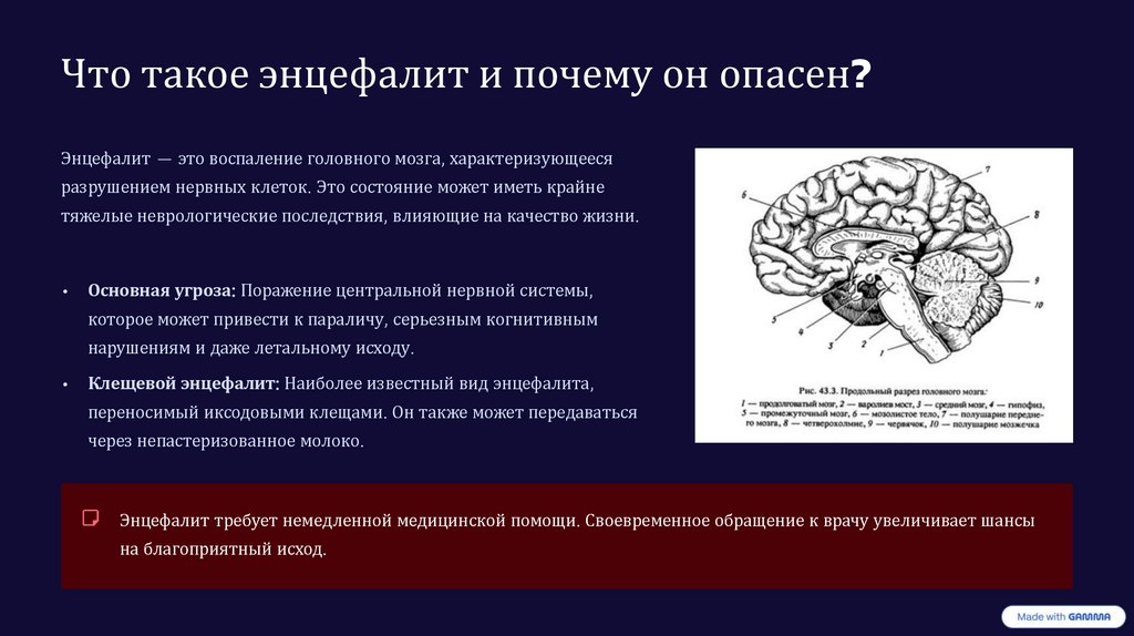 Энцефалит требует немедленной медицинской помощи. Своевременное обращение к врачу увеличивает шансы