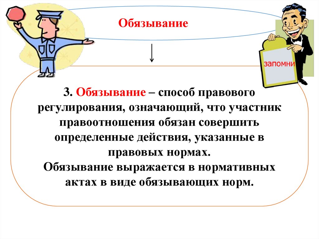 Обязывание3. Обязывание – способ правового