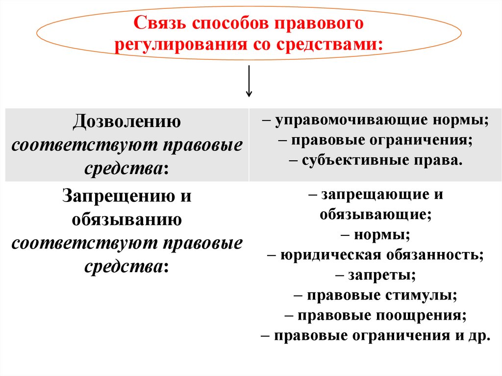 Связь способов правовогорегулирования со средствами: