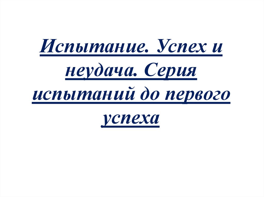 1. Испытание. Успех и неудача. Серия испытаний до первого успеха