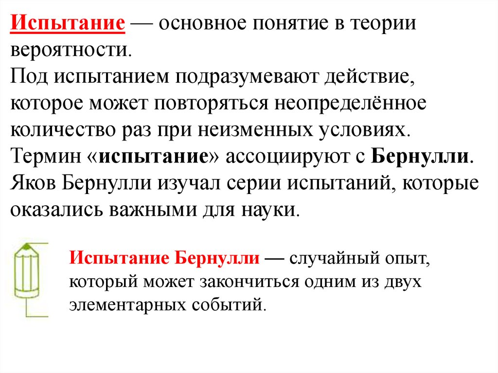 Термин «испытание» ассоциируют с Бернулли.