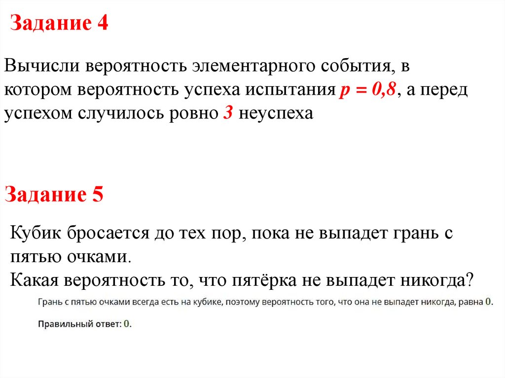 Задание 4Вычисли вероятность элементарного события, в
