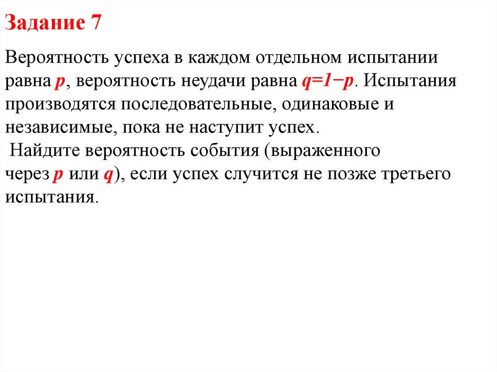 Задание 7Вероятность успеха в каждом отдельном испытании